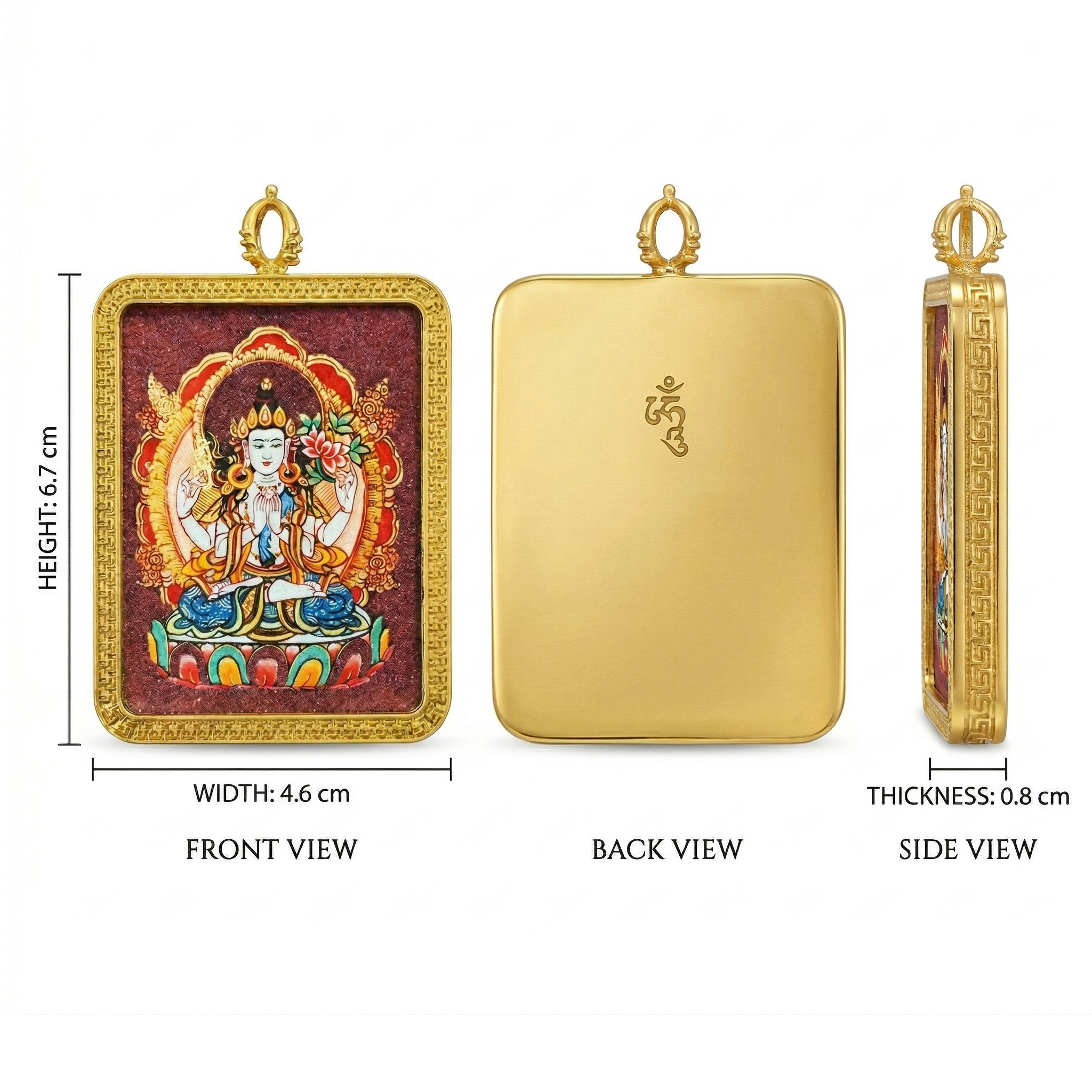 A Gift of Pure Intent The Four-Armed Chenrezig is the ultimate symbol of Metta (Loving-Kindness). Whether it is a gift for a loved one going through a transition or a self-care treat to ground your energy, this pendant carries a frequency of profound peace.